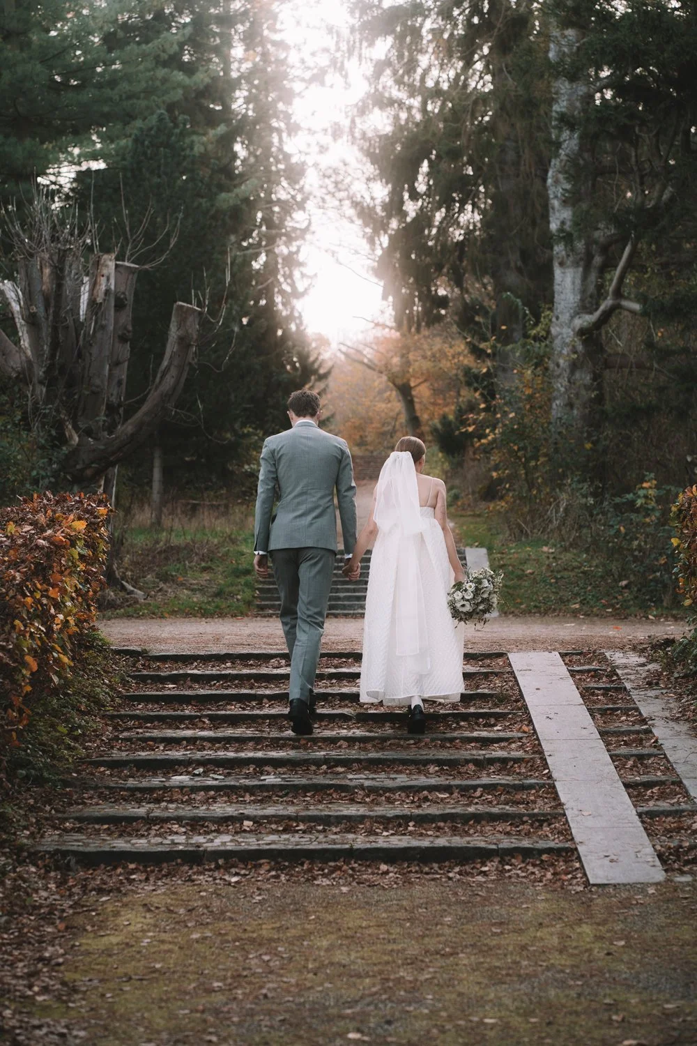 Mit første ‘vinterbryllup’ var en eksplosion af sene efterårsfarver, isblå himmel og storslåethed i Mindeparken. Emilie og Mathias Sunekær Norsgaard var heldigvis friske på en halvkold gåtur i det aarhusianske!